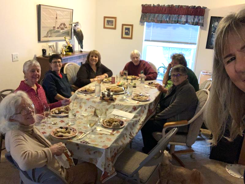I once again hosted a potluck Thanksgiving dinner. This year there were 8 of us and the food was delicious. There was quite a variety too. We did have a slight mishap where the fried onion rings on top of the green bean casserole caught on fire while browning! We got it out and Janice scraped off the worst of it. The rest of it tasted just fine. In addition we had turkey and gravy, mashed potatoes, dressing, beets, rolls with butter and a relish tray. And all that was topped off with pumpkin pie and apple pie! I made my usual turkey soup and that, along with the leftover turkey, stuffing and gravy are safely tucked away in the freezer for a future meal. I actually got kind of tired of turkey this year!